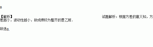 A. 甲班 B. 乙班 C. 两班一样整齐 D. 无法确定
