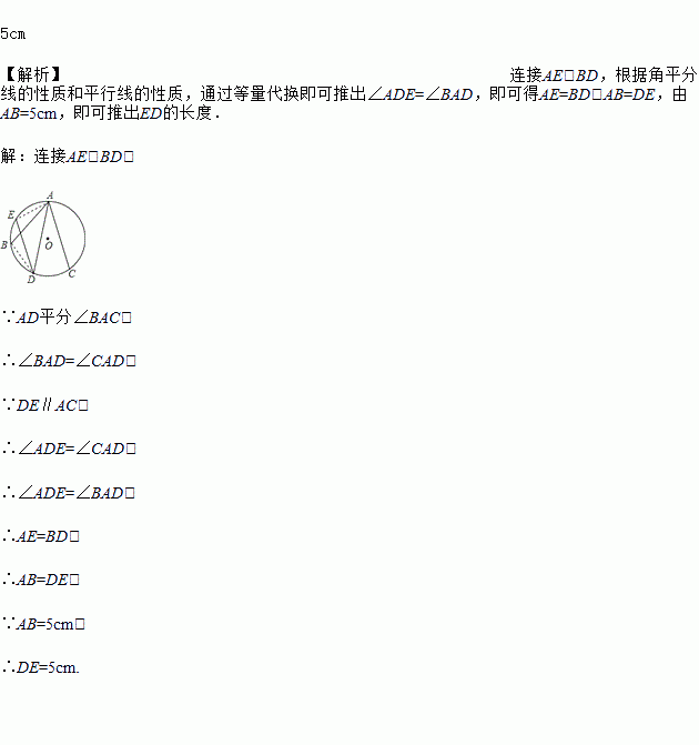 如图,AD平分∠BAC,DE∥AC,且AB=5cm,求DE的长.