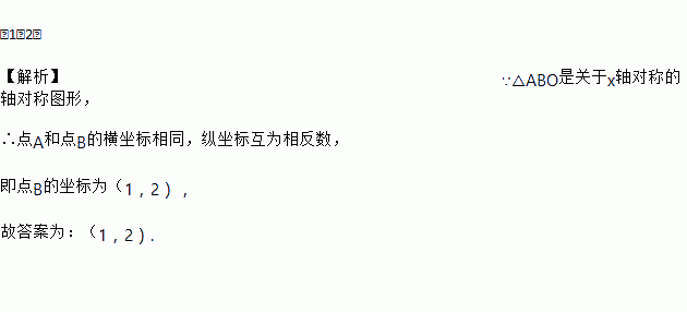 如图,△ABO是关于x轴对称的轴对称图形,点A的坐标为(1,﹣2),则点B的坐标为_____.
