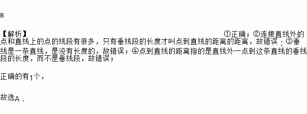 ②连结直线外的点和直线上的点的线段叫做点到直线的距离;
