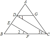 12.分析 根据在同一平面内垂直于同一直线的两直线互相平行判断出CD∥EF,再根据两直线平行,同位角相等可得∠3=∠2,然后求出∠1=∠3,最后根据内错角相等,两直线平行解答.