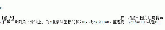 D 【解析】【解析】 根据作图方法可得点P在第二象限角平分线上,则P点横纵坐标的和为0,故2a+b+1=0,整理得:2a+b=﹣1,故选B.