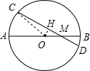 分析:根据题意画出图形,做OH⊥CD,连接OC,由题意推出OM的长度,然后根据特殊角的三角函数值即可求出OH的长度,再根据勾股定理即可推出CH的长度,由垂径定理即可推出结论.