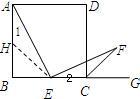分析:(1)取AB的中点H,连接EH,根据已知及正方形的性质利用ASA判定△AHE≌△ECF,从而得到AE=EF;