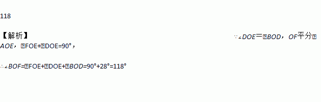 如图,直线AB、CD相交于点O,∠DOE=∠BOD,OF平分∠AOE,若∠BOD=28°,