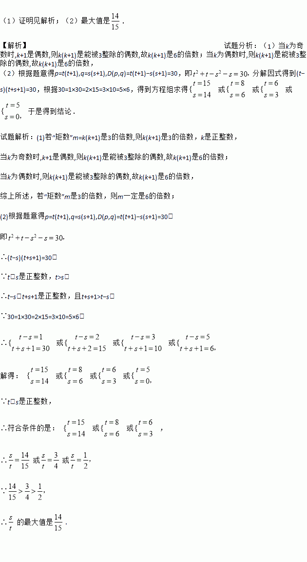 (1)求证:若“矩数”m是3的倍数,则m一定是6的倍数;