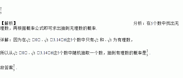 从,0,,3.14,6这五个数中随机抽取一个数,抽到的无理数的概率是_____.