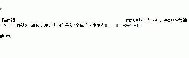 在数轴上有一点A,它所对应表示的数是3,若将点A在数轴上先向左移动8个单位长度,再向右移动4个单位长度得点B,此时点B所对应表示的数( )