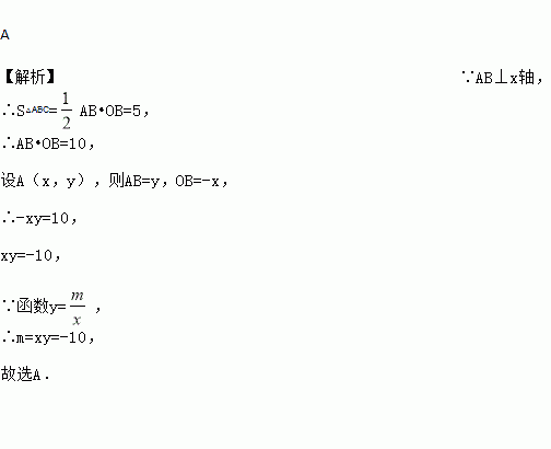 的图象上的一点,过点A作AB⊥x轴于点B,点C在y轴的负半轴上,连接AC,BC.若△ABC的面积为5,则m的值为( )