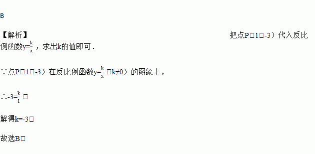 已知点P(1,﹣3)在反比例函数y=
