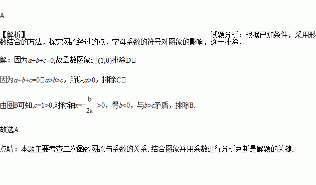 已知二次函数y = ax2 + bx + c,如果a>b>c ,且a + b + c = 0,则它的大致图象应是 ( )