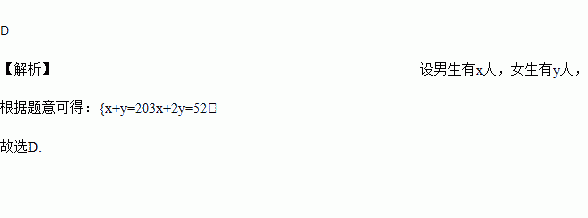 植树节这天有20名同学共种了52棵树苗,其中男生每人种树3棵,女生每人种树2棵.设男生有x人,女生有y人,根据题意,下列方程组正确的是( )
