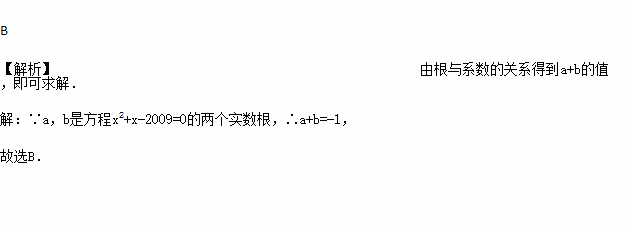 设a,b是方程x2+x-2009=0的两个实数根,则a+b的值为 ( )