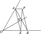 如图,已知∠AOB,OA=OB,点E在OB边上,四边形AEBF是平行四边形,请你只用无刻度的直尺在图中