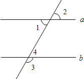 ×128°=64°,由于a∥b,根据“两直线平行,内错角相等”得到∠4=∠1=64°,然后利用邻补角的定义可计算出∠3的度数.