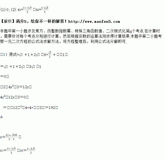 (2)解方程:4x2﹣3=12x(用公式法解)