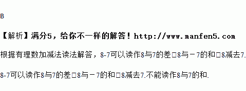 A. 8与7的差 B. 8与7的和 C. 8与-7的和 D. 8减去7