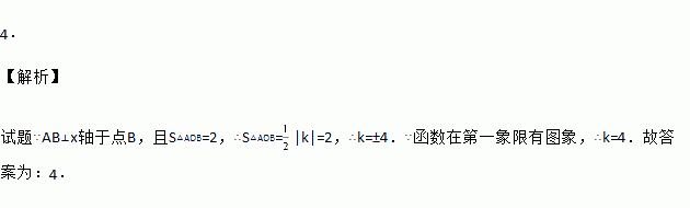 如图,过反比例函数y=(x>0)的图象上一点A作AB⊥x轴于点B,连接AO,若S△AOB=2,则k的值为___________