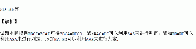 如图,BC = EC,∠1 =∠2,要使△ABC≌△DEC,则应添加的一个条件为_____________(答案不惟一,只需填一个)
