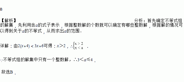 已知关于x的不等式组,若不等式组的解集中只有一个整数解,则a的取值范围是( )