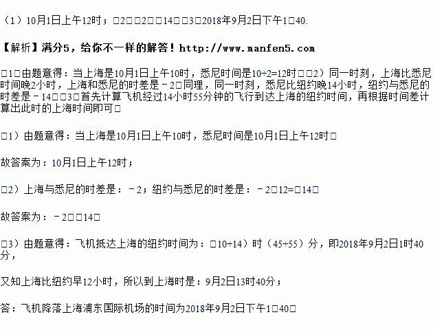 (1)当上海是10月1日上午10时,悉尼时间是 .