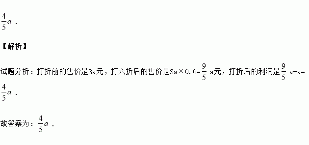 一件童装每件的进价为a元(),商家按进价的3倍定价销售了一段时间后,为了吸引顾客,又在原定价的基础上打六折出售,那么按新的售价销售,每件童装所得的利润用代数式表示应为 元.