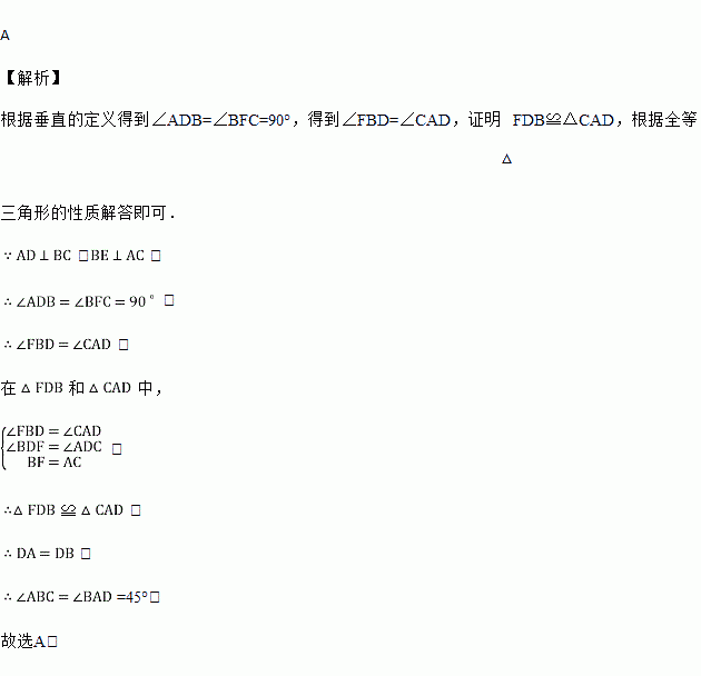 如图,中,于D,于E,AD交BE于点F,若,则等于