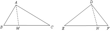 (2)能否分别过A,D在这两个三角形中各作一条辅助线,使△ABC分割成的两个三角形与△DEF分割成的两个三角形分别对应相似?证明你的结论。