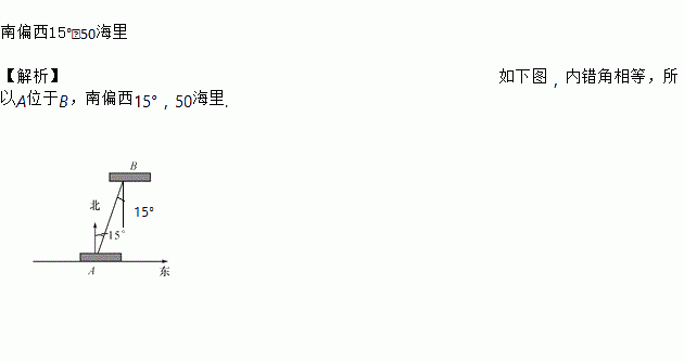 如图,一艘船在A处遇险后向相距50海里位于B处的救生船报警.用方向和距离描述遇险船相对于救生船的位置___________.