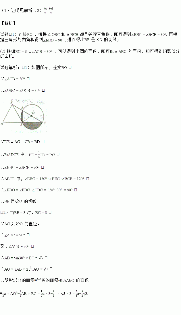 (2)当BE=3时,求图中阴影部分的面积.