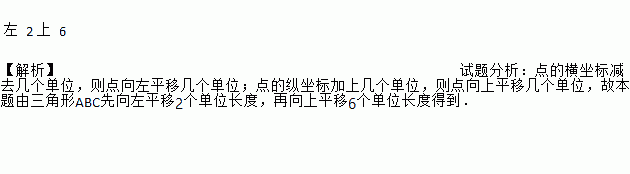 如果将三角形ABC三个顶点的横坐标都减2,纵坐标都加6,得到三角形A′B′C′,则三角形A′B′C′是由三角形ABC先向____平移____个单位长度,再向____平移____个单位长度得到.