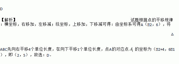 如图,在平面直角坐标系中,△ABC的顶点都在方格纸的格点上,如果将△ABC先向右平移4个单位长度,在向下平移1个单位长度,得到△