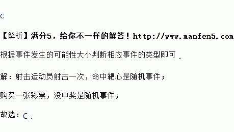 事件①:射击运动员射击一次,命中靶心;事件②:购买一张彩票,没中奖,则( )