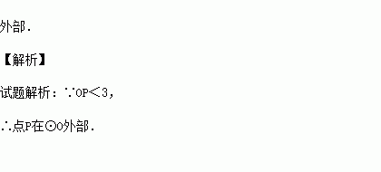 已知⊙O的半径是3,OP=2,则点P与⊙O的位置关系是:点P在⊙O .