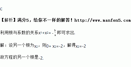 已知x=0是方程x2+2x+a=0的一个根,则方程的另一个根为 ( )