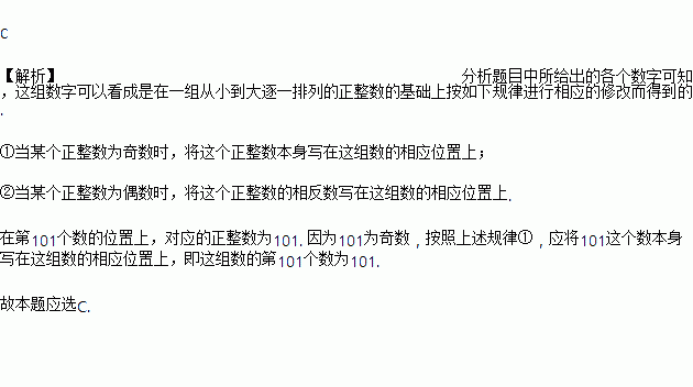 观察下列一组数:1.-2.3.-4.5.-6.7.-8.…,则第101个数是( )