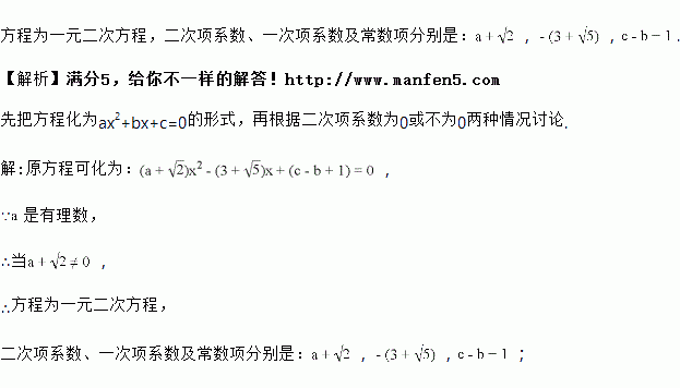 已知、、均为有理数,判定关于的方程是不是一元二次方程?如果是,请写出二次项系数、一次项系数及常数项;如果不是,请说明理由.
