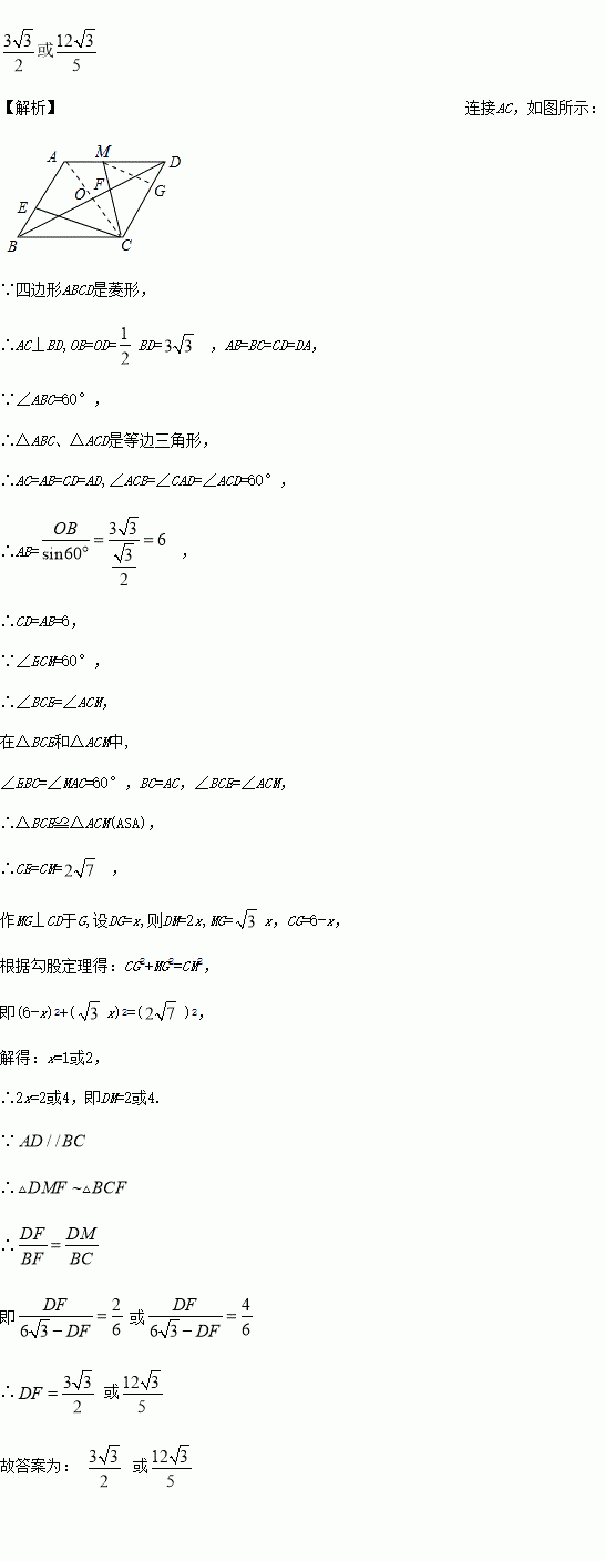 ,将CE绕点C旋转60°交线段BD于F,则DF的长为 _________________.