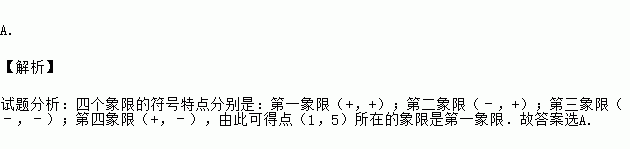 在平面直角坐标系中,点(1,5)所在的象限是( )