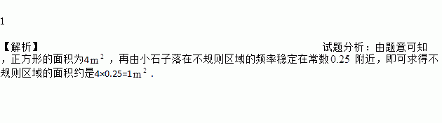 如图,为测量平地上一块不规则区域(图中的阴影部分)的面积,画一个边长为2m的正方形,使不规则区域落在正方形内,现向正方形内随机投掷小石子(假设小石子落在正方形内每一点都是等可能的),经过大量重复投掷试验,发现小石子落在不规则区域的频率稳定在常数0.25附近,由此可估计不规则区域的面积是__m2.