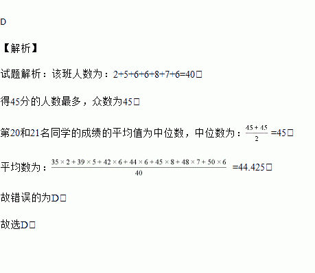 成绩(分) | 35 | 39 | 42 | 44 | 45 | 48 | 50 |