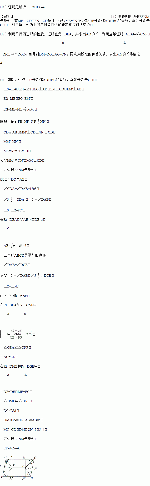 (1)求证:四边形EFNM是矩形;