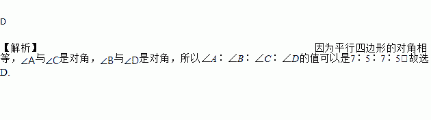 在平行四边形ABCD中,∠A∶∠B∶∠C∶∠D的值可以是( )