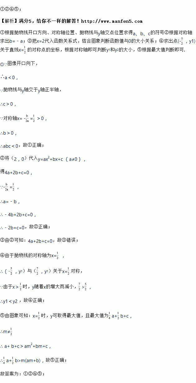 ,y2)是抛物线上的两点,则y1<y2;⑤