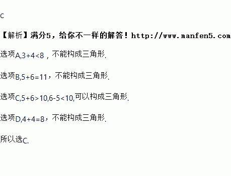 A. 3,4,8 B. 5,6,11 C. 5,6,10 D. 4,4,8