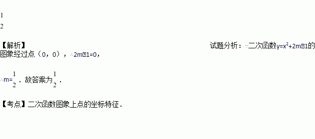 若二次函数y=x2+2m﹣1的图象经过原点,则m的值是_________.