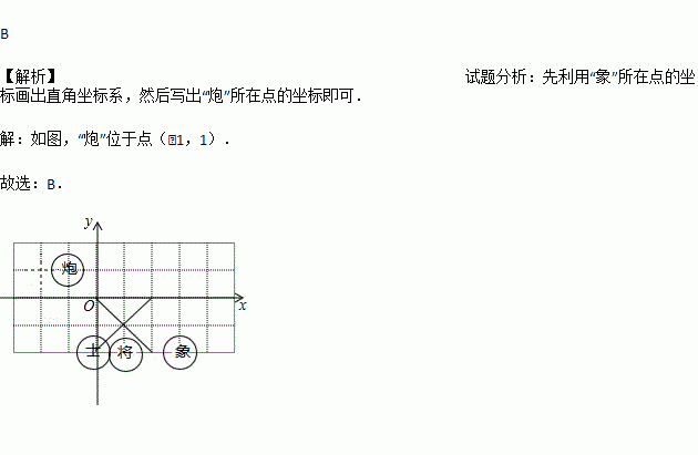 如图,若象棋盘上建立直角坐标系,使“将”位于点(1,-2),“象”位于点(3,-2),则“炮”位于点( )