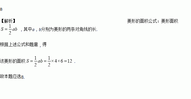若菱形两条对角线的长分别为4和6,则此菱形面积为( )