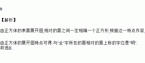 在市委、市府的领导下,全市人民齐心协力,将我市成功地创建为“全国文明城市”,为此小红特制了一个正方体玩具,其展开图如图所示,原正方体中与“全”字所在的面相对的字应是( )