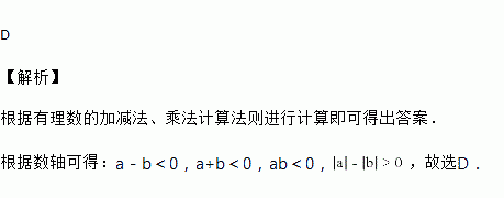 A. a﹣b<0 B. a+b<0 C. ab<0 D. |a|﹣|b|<0